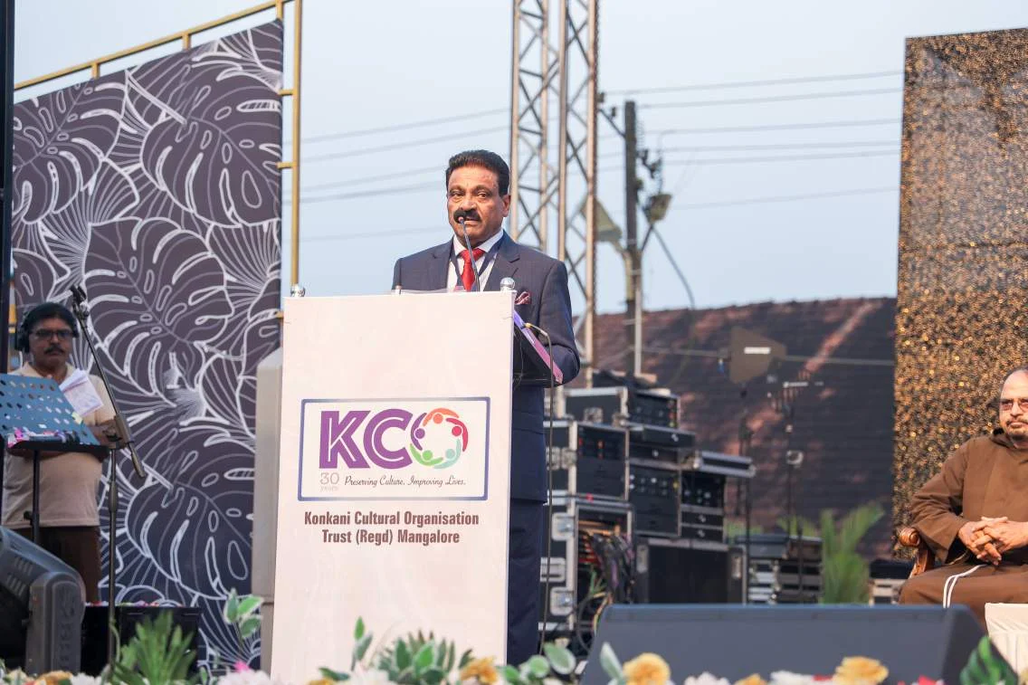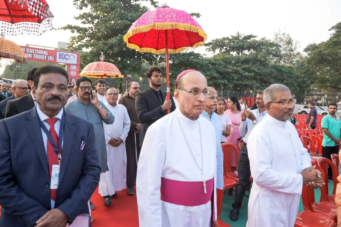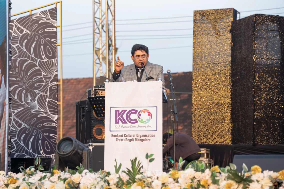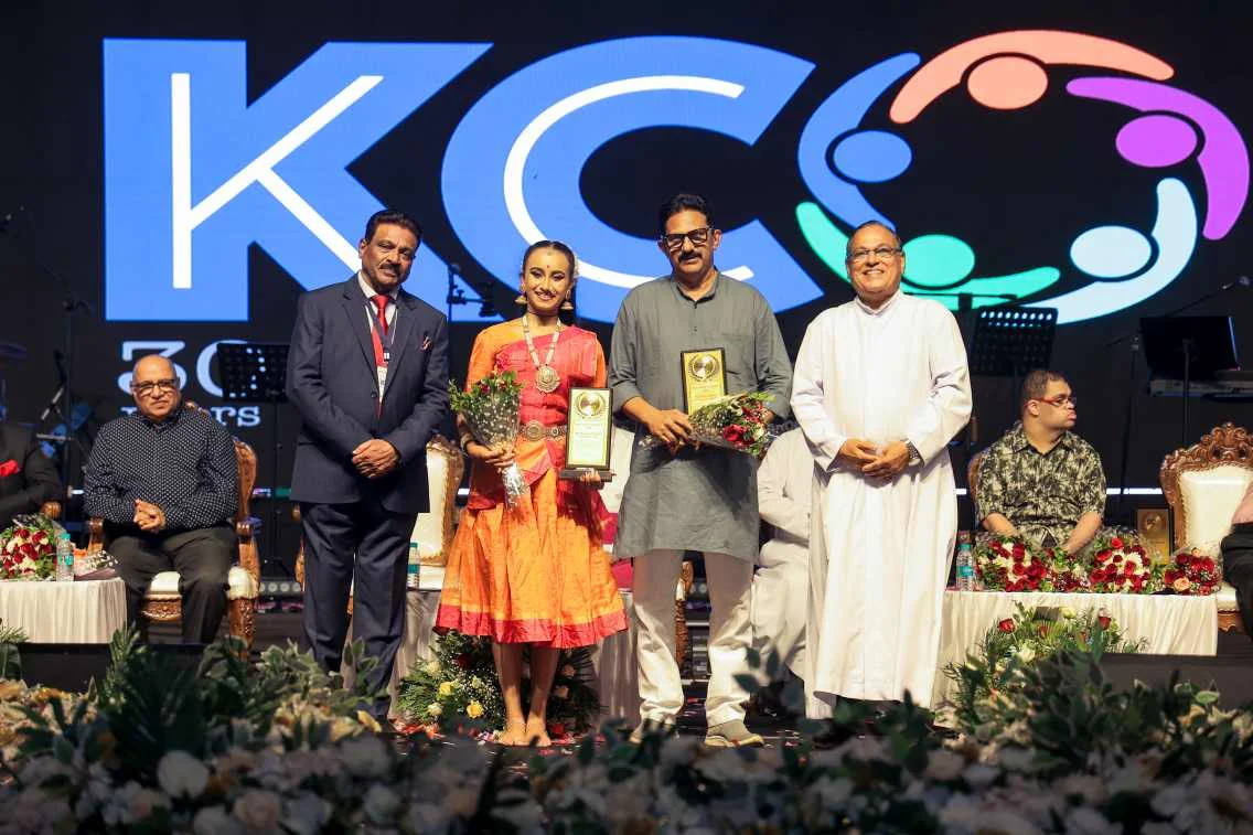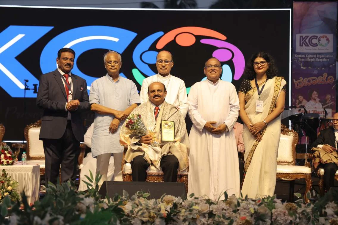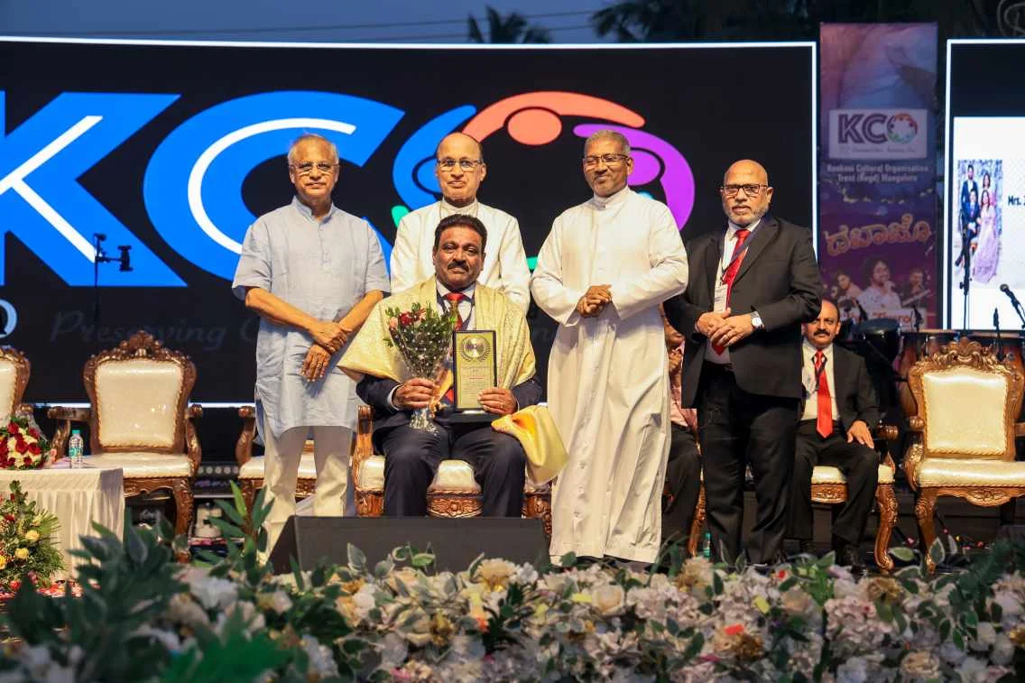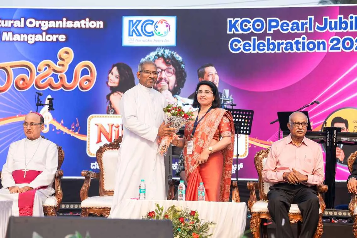The evening began with a welcome by well-known MC Leslie Rego and a majestic ceremonial procession, featuring the Bishop of Udupi, Most Rev. Dr. Gerald Isaac Lobo, KCO founder and current president, Mr. Leo Rodrigues and other distinguished guests, escorted by the soul-stirring melodies of a traditional brass band. The program was initiated by Rev. Fr. Clifford Fernandes, Parish Priest of Cordel Parish, with a heartfelt invocation, followed by a captivating welcome dance by Ms. Remona Pereira and her team, that set the tone for a night of music, dance, and celebration.