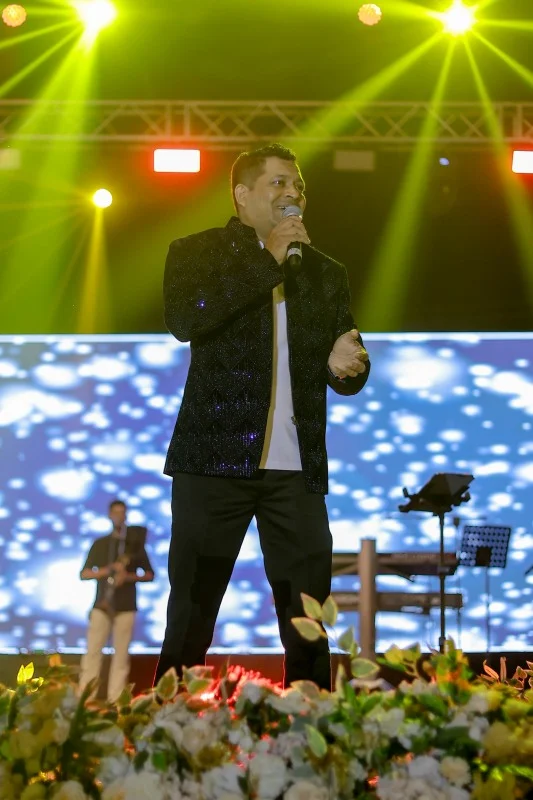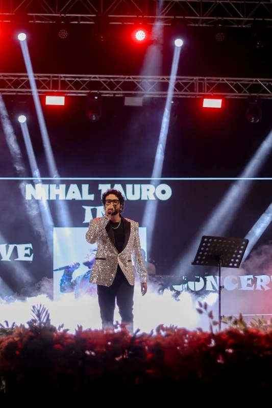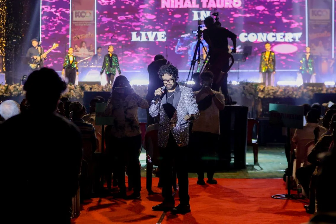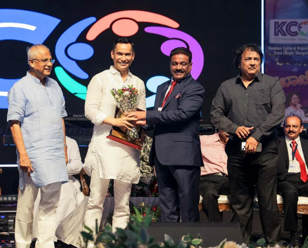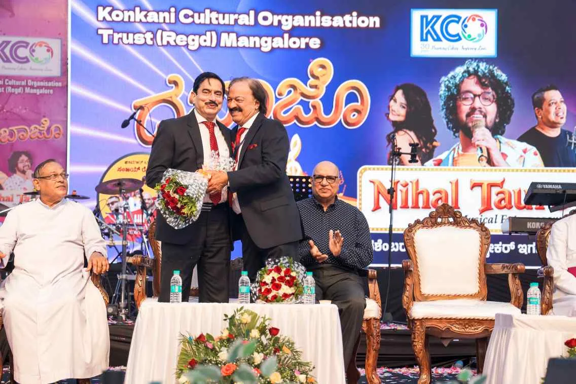 The highlight of the evening was the electrifying performance by Nihal Tauro, Indian Idol 12 finalist, who mesmerized the audience with his soulful voice and energetic stage presence. Backed by a talented music troupe from Mumbai, Tauro delivered a performance that had the audience on their feet, singing along to hits like “Gombe Heluthaithe,” (Kannada) “Mogh Tujo Kitlo Ashelo,” (Konkani) and “Mokeda Singari.(Tulu)” His infectious energy was palpable as he danced among the crowd, encouraging everyone to join in the fun.