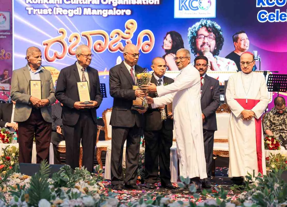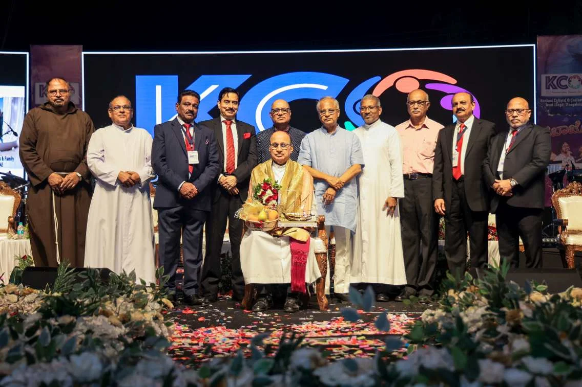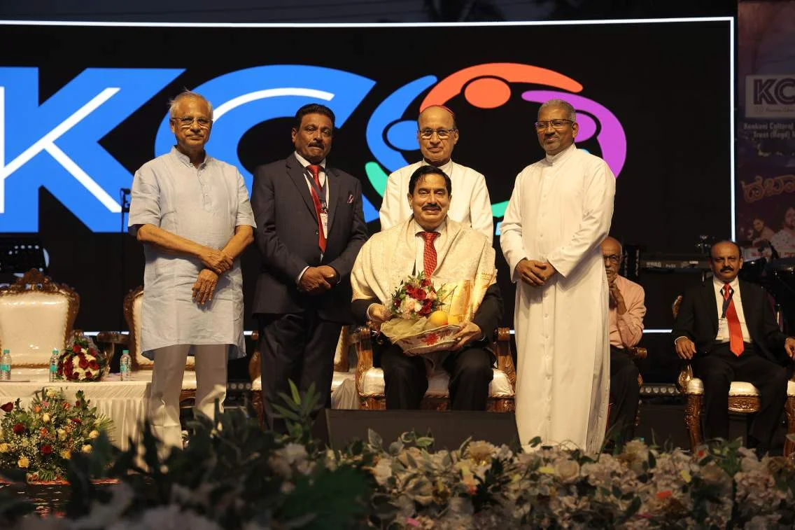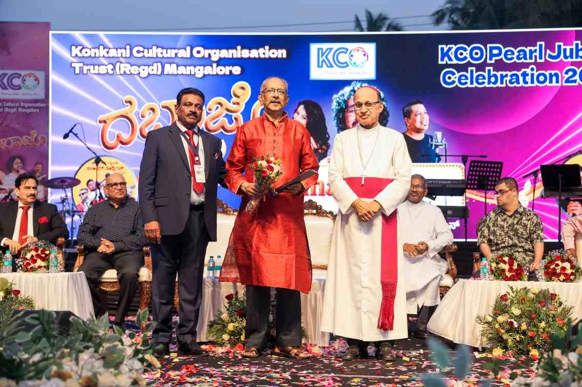 Bishop Dr. Gerald Isaac Lobo released the KCO Pearl Jubilee Souvenir and praised KCO’s dedication to its mission, stating, “KCO has wiped the tears of many marginalized families.” The event also honoured former Presidents, Secretaries, and Treasurers of KCO for their contributions, and recognized the efforts of Mr. Franklin D’Cunha, Convenor of Pearl Jubilee Committee and Mr. Valerian Dalmaida, Chief Editor of Pearl Jubilee Souvenir and founder President and the current president, Mr. Leo Rodrigues recognized for his service and sponsorship for the past 30 years, with shawl, flowers and memento.