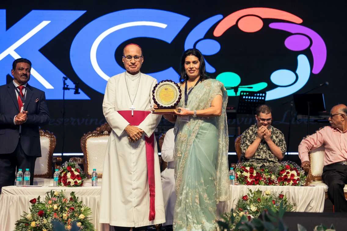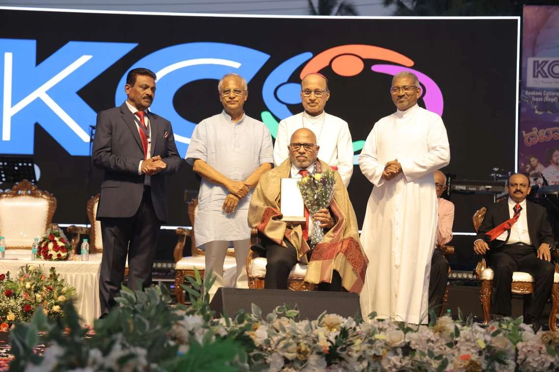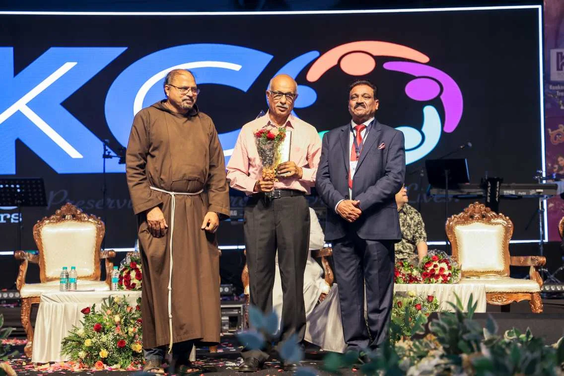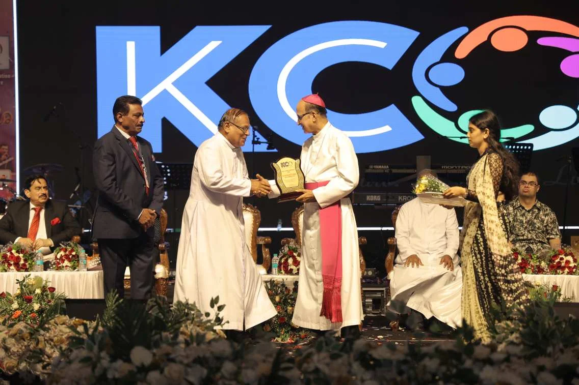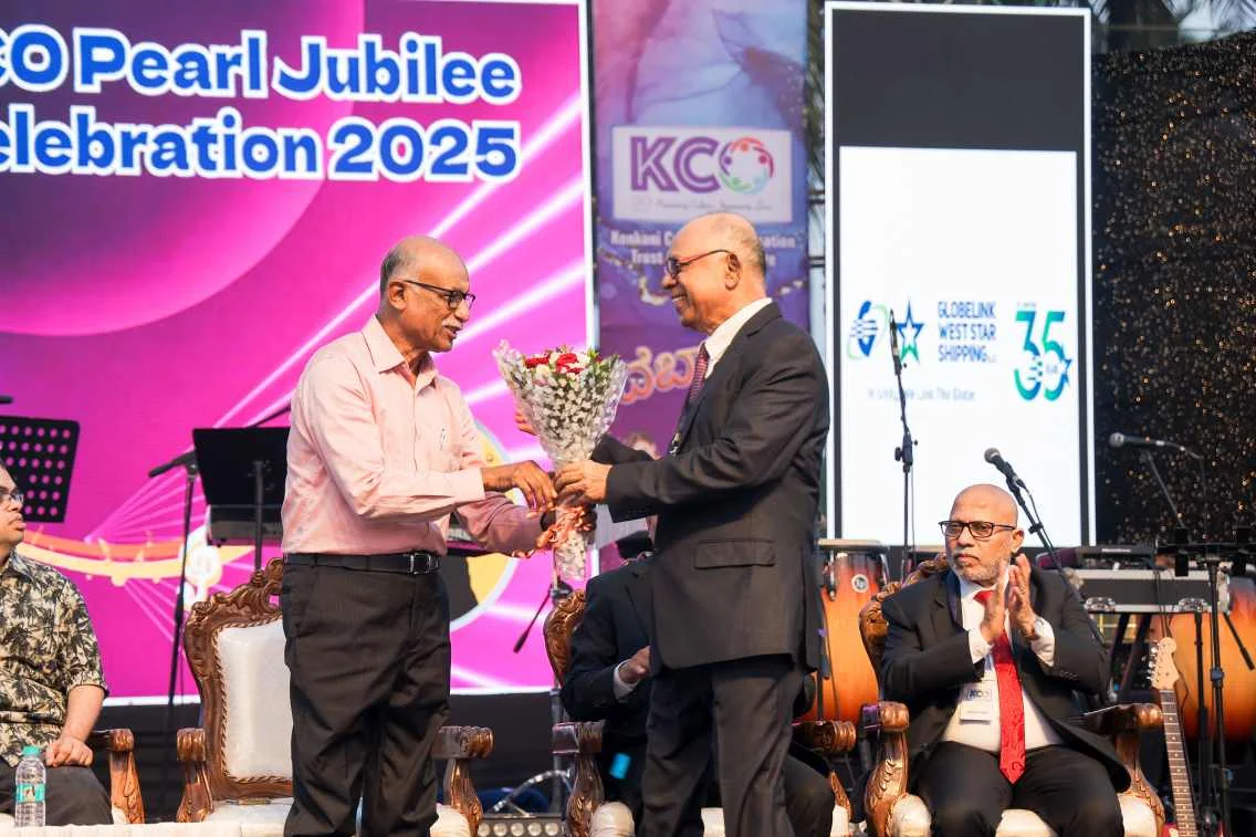 Bishop Dr. Gerald Isaac Lobo released the KCO Pearl Jubilee Souvenir and praised KCO’s dedication to its mission, stating, “KCO has wiped the tears of many marginalized families.” The event also honoured former Presidents, Secretaries, and Treasurers of KCO for their contributions, and recognized the efforts of Mr. Franklin D’Cunha, Convenor of Pearl Jubilee Committee and Mr. Valerian Dalmaida, Chief Editor of Pearl Jubilee Souvenir and founder President and the current president, Mr. Leo Rodrigues recognized for his service and sponsorship for the past 30 years, with shawl, flowers and memento.