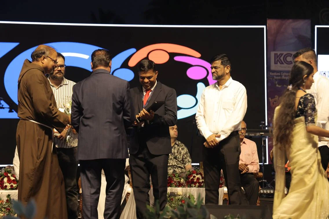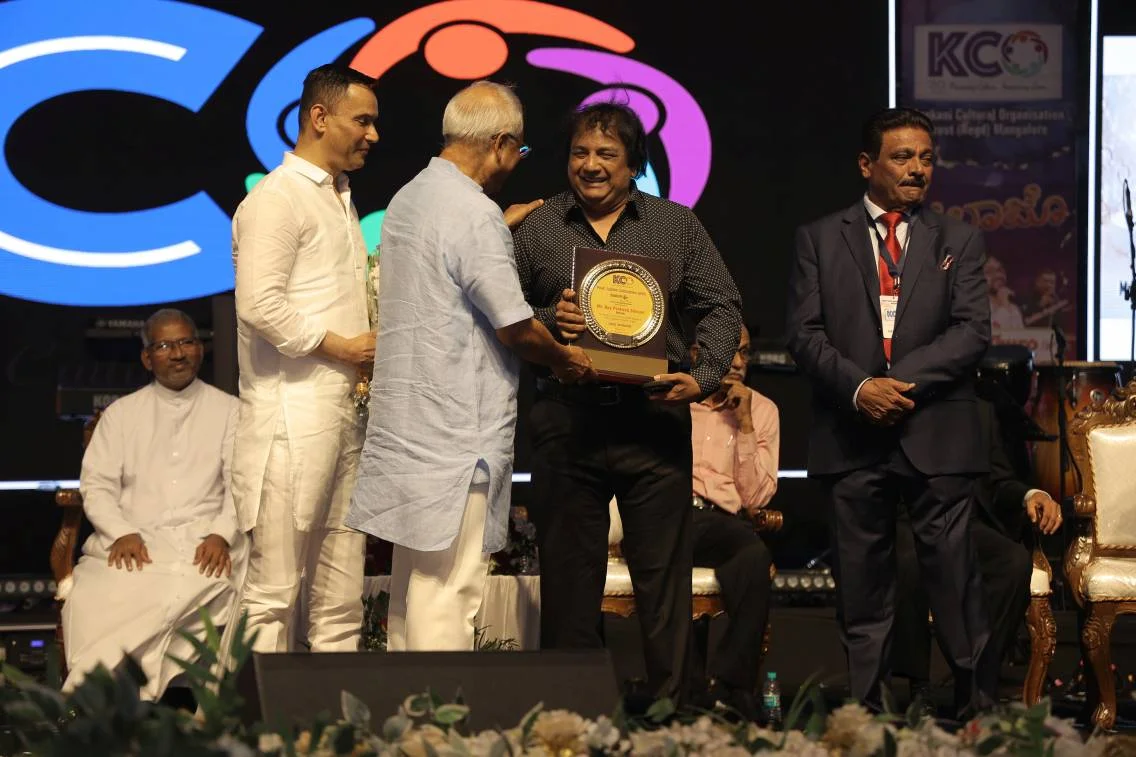 Rev. Fr. Clifford Fernandes, Rev. Fr. Cyprian D’Souza, Rev. Fr. Ronald Cutinha, Guest of honour Mr. J. R. Lobo, Former MLA, SVP Central Council President Mr. Joe Coelho, Media heads, Ms. Remona Pereira, Mr. Stany Alvares -KKSA President were felicitated during the event, by the dignitaries on the dais and the artists and MC Leslie Rego were felicitated by KCO president.