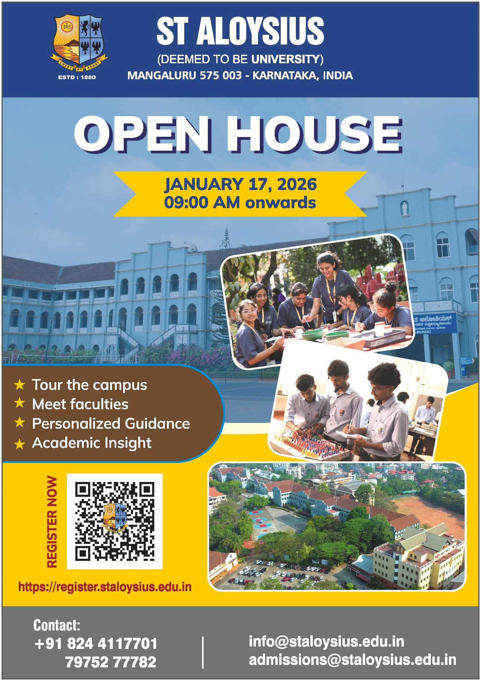 Mangaluru: St Aloysius University has announced an Open House Programme for prospective students and parents, offering a comprehensive opportunity to explore the campus, interact with faculty members, and gain first-hand insight into academic programmes, infrastructure, and student life.