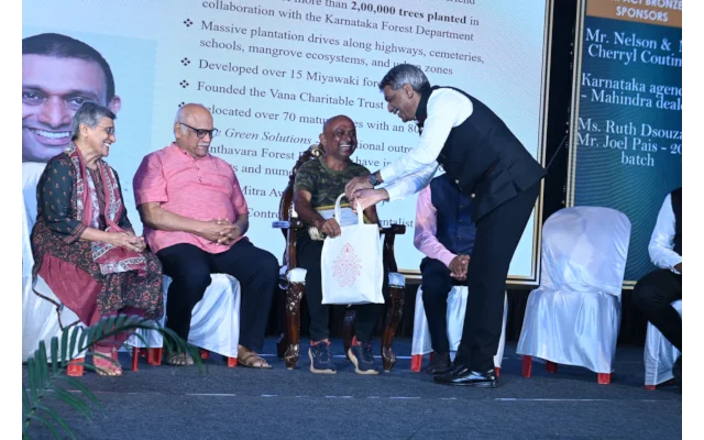 The Earth Guardian Award was conferred on Mr. Jeeth Milan Roche for his environmental leadership, including large-scale afforestation initiatives and the creation of multiple Miyawaki forests in Mangaluru, significantly contributing to the greening of the city. Accepting the award, Mr. Roche urged every individual to plant at least 175 trees to help restore ecological balance. He highlighted that the three basic necessities—air, water and food—have today become a luxury, and called upon society to invest in nature and to become the voice of the voiceless.