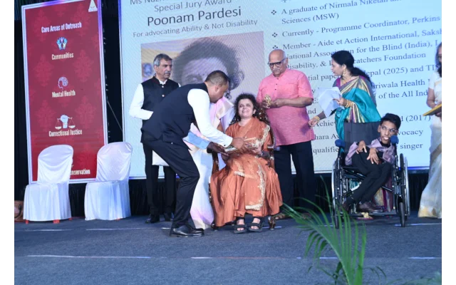 The Special Jury Award, instituted in the name of Ms. Nazneen Abdulla Yenepoya, was conferred on Ms. Poonam Pardeshi for her outstanding advocacy that champions ability rather than disability. Accepting the award, Ms. Poonam expressed her deep gratitude to the School of Social Work and the Roshni Alumni Association for the recognition. She acknowledged the unwavering belief and support of her parents, stating that the award serves as a powerful encouragement to continue her work. She dedicated the honour to countless persons with disabilities and strongly emphasised that people with disabilities do not seek pity, but demand dignified access, equality and true inclusion. She articulated her vision of building an inclusive and egalitarian society where everyone can thrive without barriers.