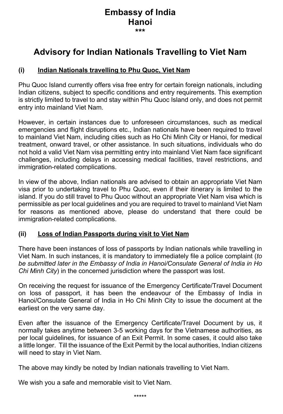 To avoid such issues, Indian nationals are strongly advised to obtain a Vietnam visa beforehand, even if their itinerary is limited to Phu Quoc.